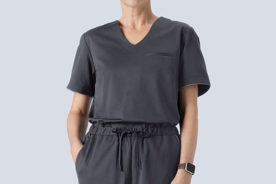 I already have this style of scrub in gray. I bought this one thinking it was a different color, but I wonder if the fabric is a little different? It feels a little stiff and a little itchy... I prefer the texture of the gray fabric.
