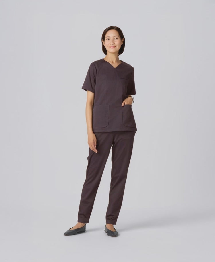 Elegant and lightweight scrub top with a stretchable, wool-like fabric—designed for all-day comfort, flexibility, and easy care, offering a polished and sophisticated appearance.