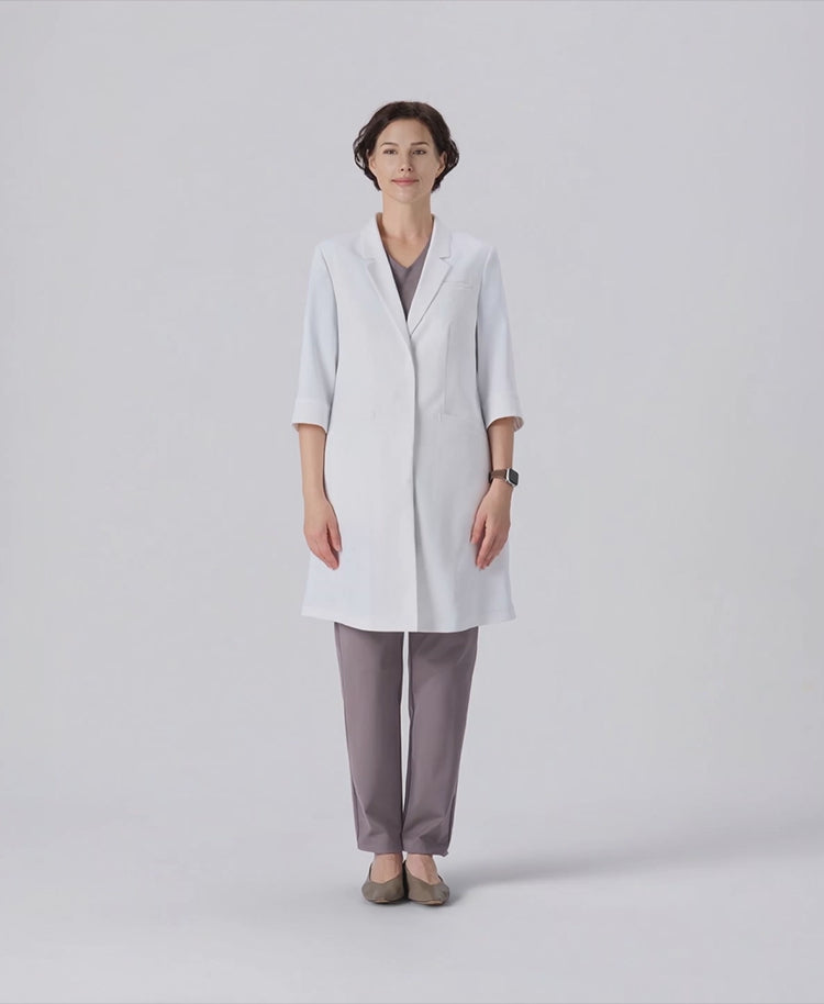 The LIGHT series combines the ease of a light jacket with professional elegance. Using hollow-core yarn, it offers breathable comfort for active healthcare professionals. This lab coat maintains a polished, tailored appearance throughout your shift.